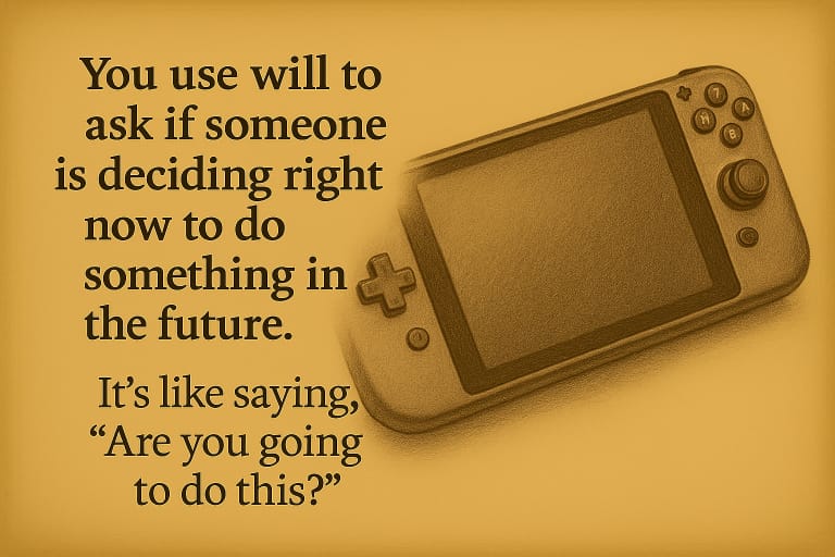 You use will to ask if someone is deciding right now to do something in the future. It’s like saying, “Are you going to do this?”